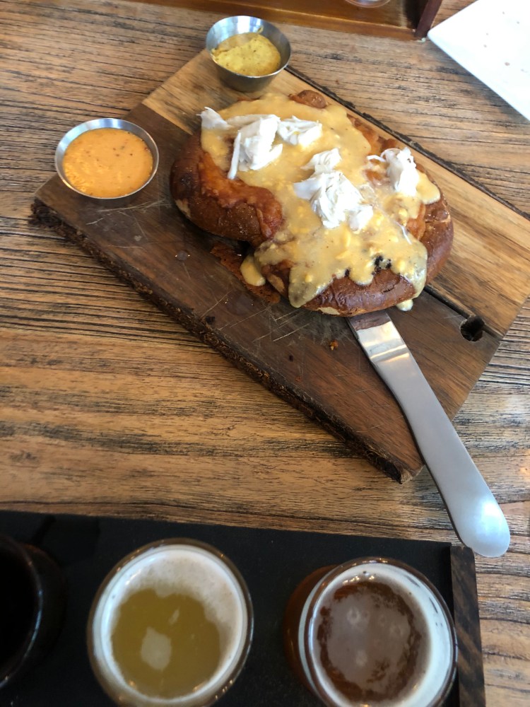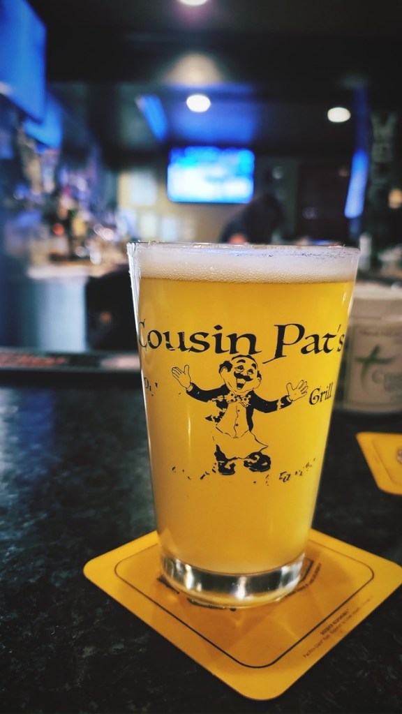 “Restaurant” was a bit loose, actually. We ended up at a dive bar with good comfort food but questionable health codes: Cousin Pat’s. Cousin Pat was personified as a cartoon on the outdoor sign, an indoor chalkboard, and some of the beer glasses.