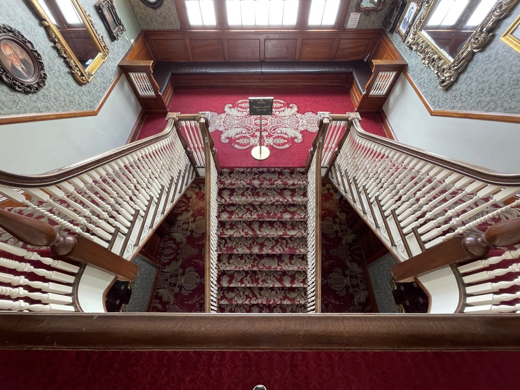 - Get some pics on the creepy stair landing, even though you’re technically not allowed to sit there during COVID.